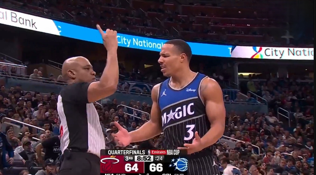 第四节贝恩彻底打疯了, 先是一记三分命中,接着强突维金斯打成2+1,转头又飙进一记远投,短短2分钟独砍9分,带领魔术打出进攻高潮,分差一下拉到14分。最终贝恩全场砍下37分6篮板5助攻,帮助魔术117-108逆转战胜热火挺进NBA杯赛东部决赛。