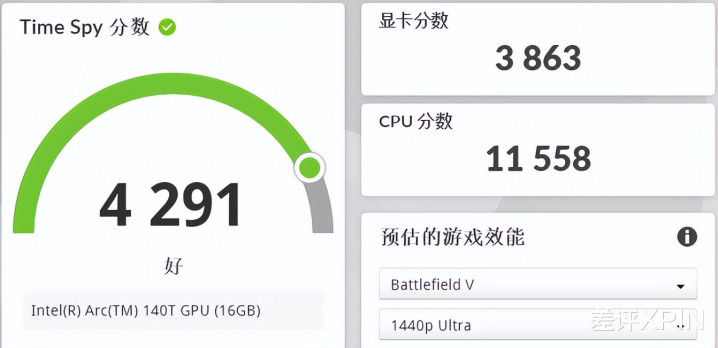 而在衡量 GPU 性能的 3DMark Time Spy 中,285H 跑出了显卡分 3863 的成绩,这个提升幅度就没那么多了。