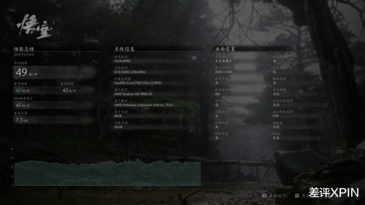 黑猴的压力会高一些。托尼测的是 2K 高画质,同样 100% 渲染。平均帧可以到 49 帧。大家不像托尼这么强迫症的话,可以开启 FSR 或者 TSR,帧数表现会更好。但不论如何,这个成绩,核显是跑不出来的。